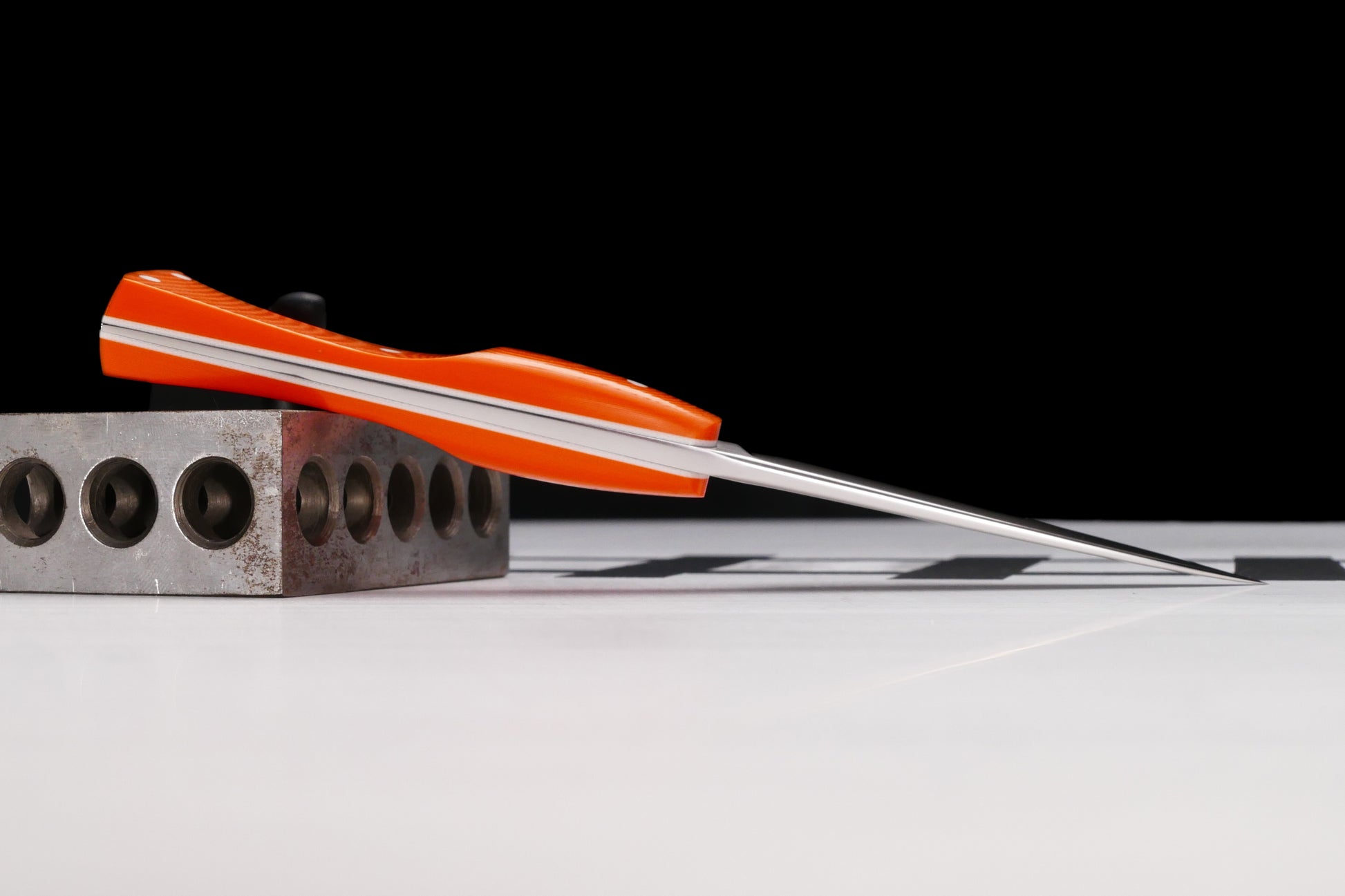 AEBL Stainless Steel, Hunter Orange Micarta, White G10