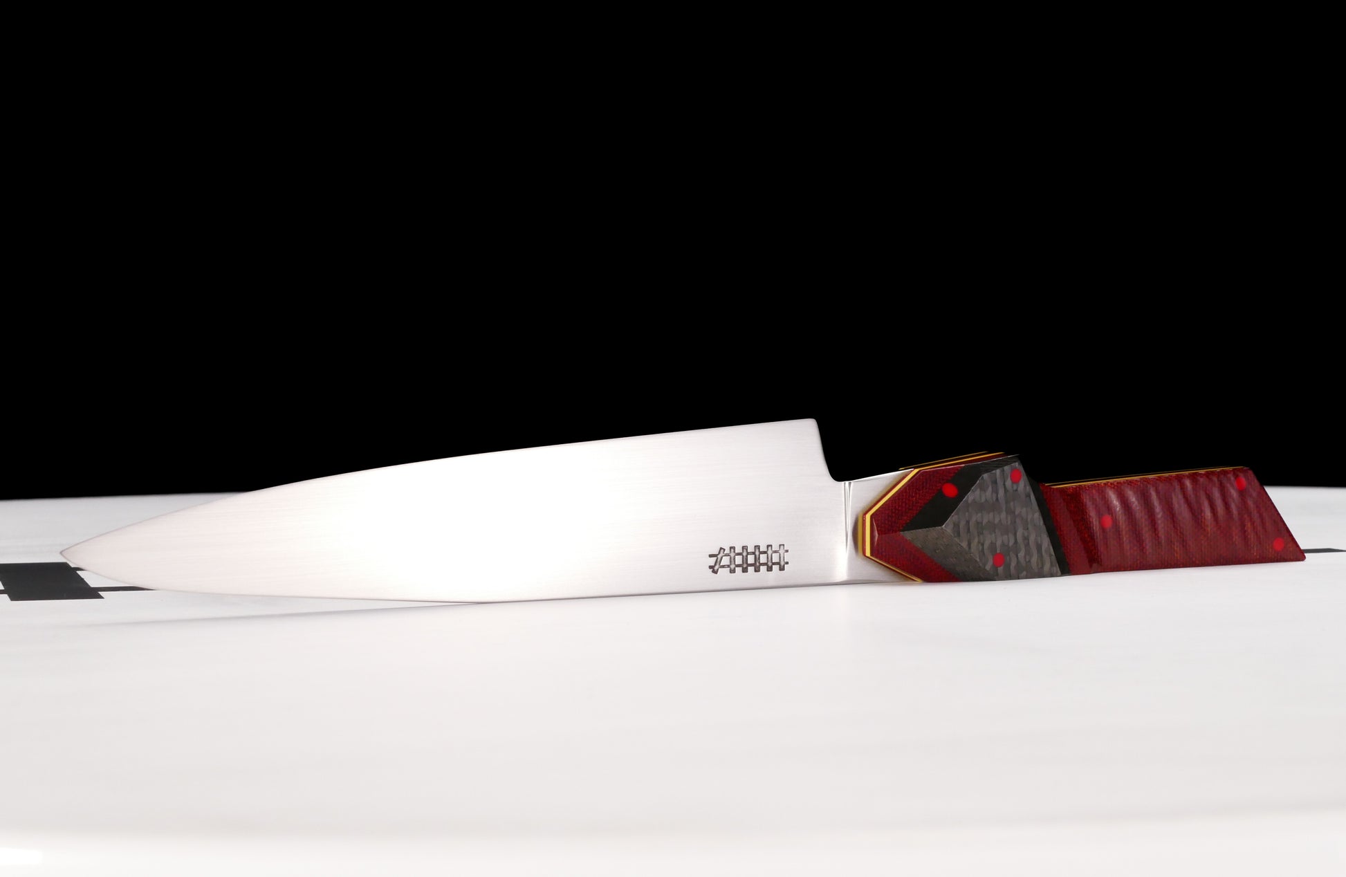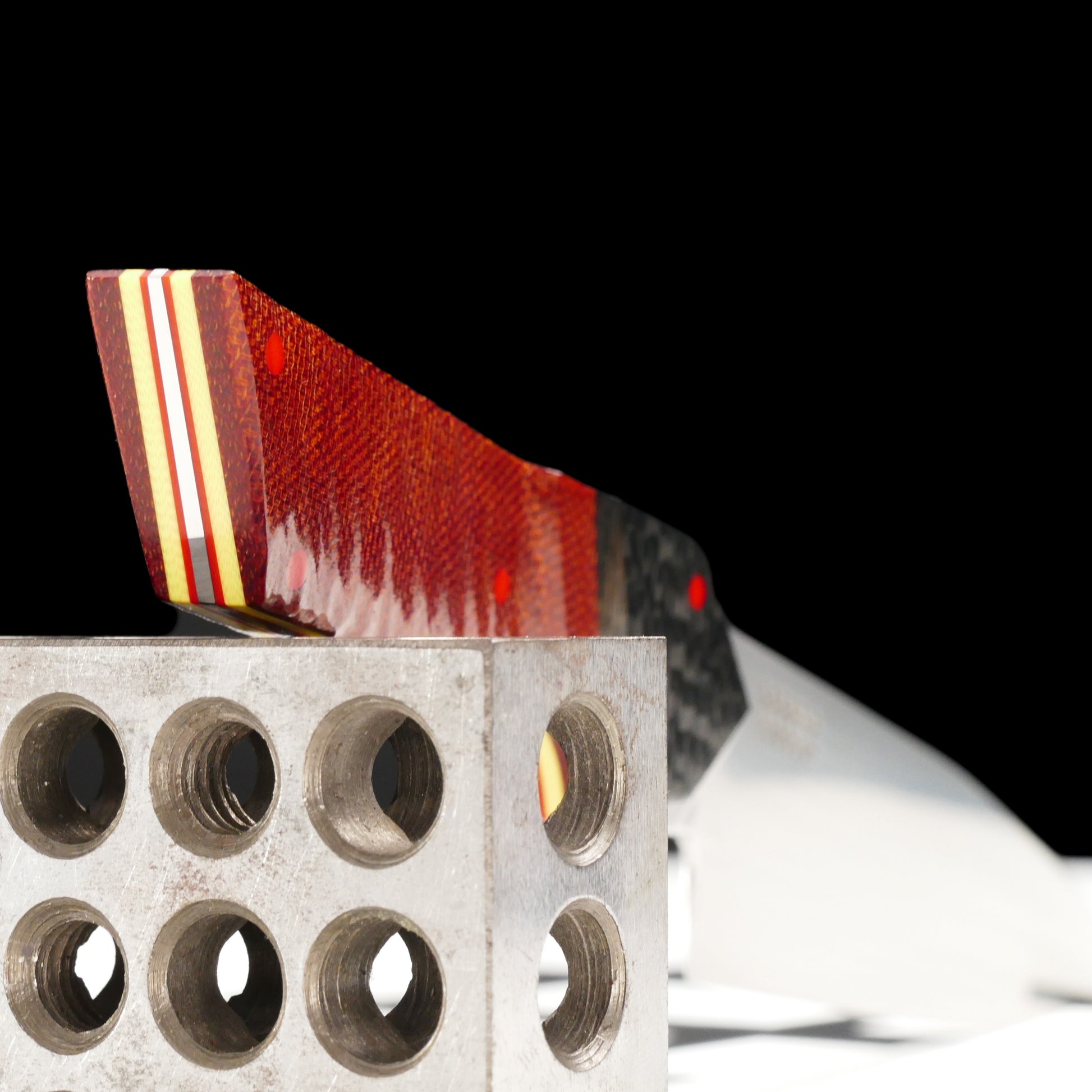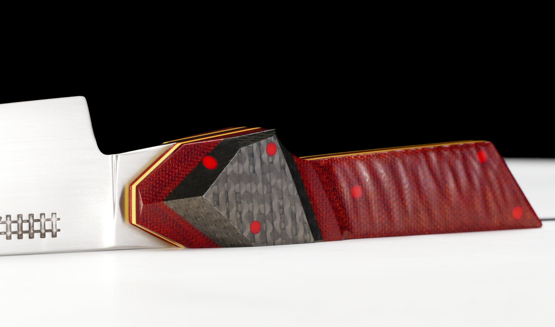 Ferrari colorway inspired Petty in AEBL stainless, carbon fiber, micarta